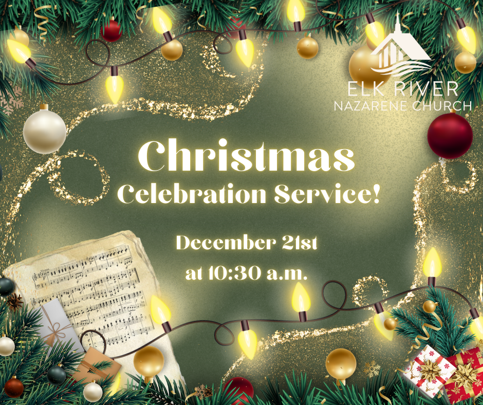 In a world that needs hope, we invite you and your family to find peace at our Christmas Service. Join us at Elk River Nazarene on Sunday, December 21st, at 10:30 a.m., as we celebrate the birth of the Prince of Peace. We look forward to sharing this special time with you!
