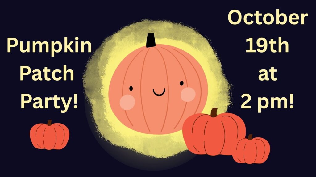 You are invited to our Fall Pumpkin Patch Party on Sunday, October 19th, from 2-4 p.m. for ages 2 years old through 5th Grade! There will be lots of fun!!! Games!! Prizes!! And lots of Candy!!! Everything is free!! We can’t wait to see you!