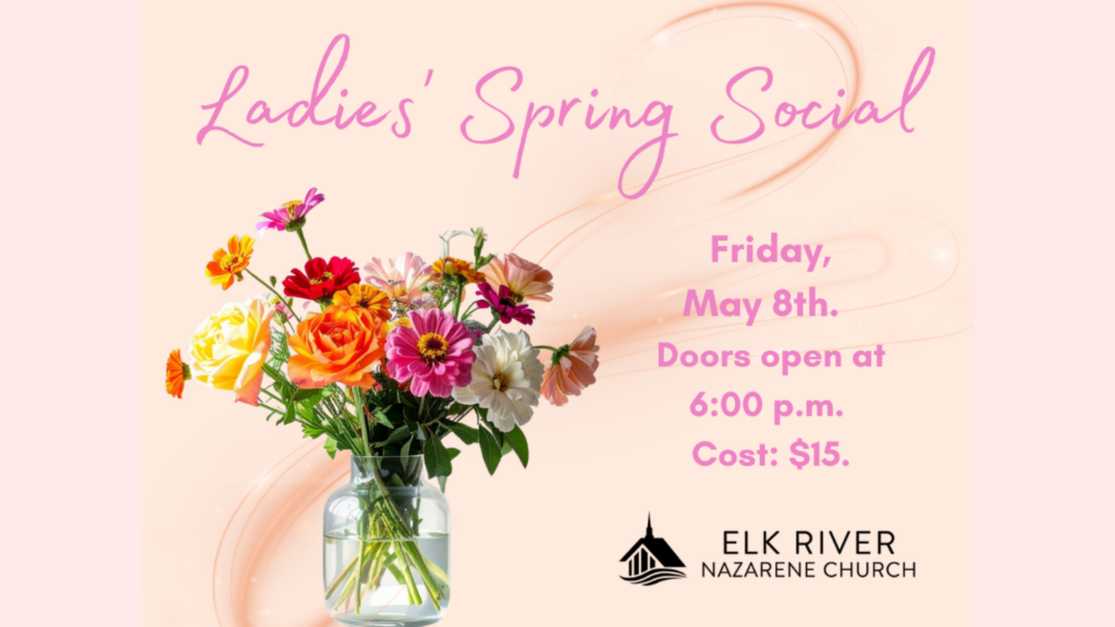 Our Ladies Spring Social is on Friday, May 8th, at 6 p.m. Cost is $15 includes dinner. Please sign up in the foyer. See Angie Foster with any questions.